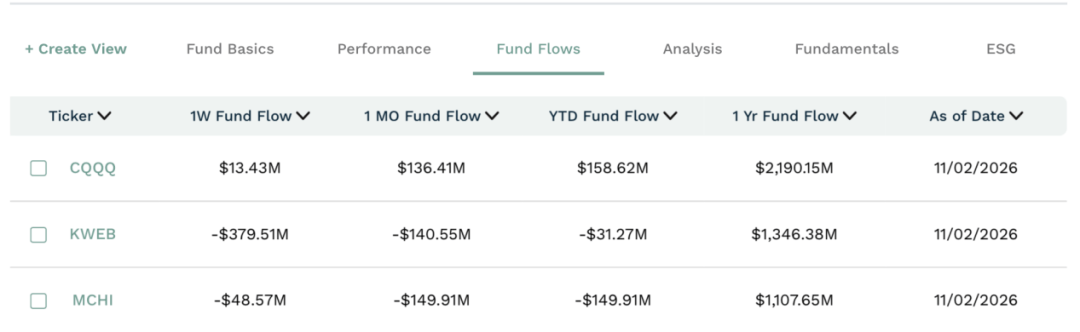 过去一年,在美国上市的中国股票ETF中3只吸金超过10亿美元。其中,CQQQ吸金21.90亿美元;同期,KWEB吸金13.46亿美元,MCHI吸金11.08亿美元。吸金最多的CQQQ聚焦中国科技公司。